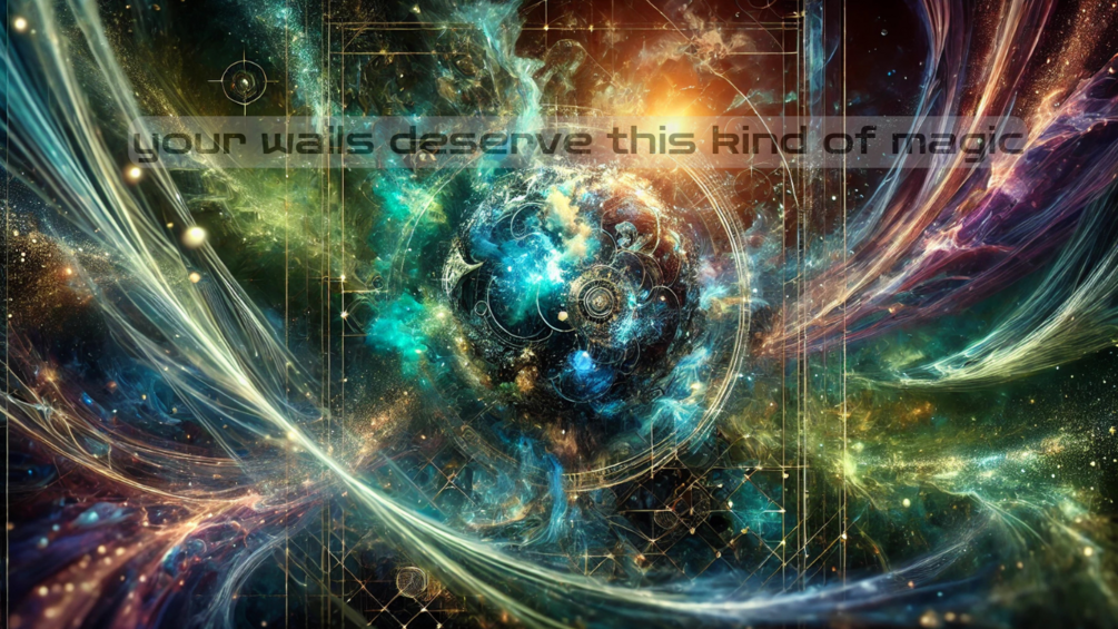 Dive into the allure of this one-of-a-kind masterpiece, meticulously designed to captivate the senses and transform any space. Featuring a harmonious blend of glowing geometric patterns, ethereal light beams, and organic flowing textures, this artwork evokes mystery, inspiration, and sophistication.